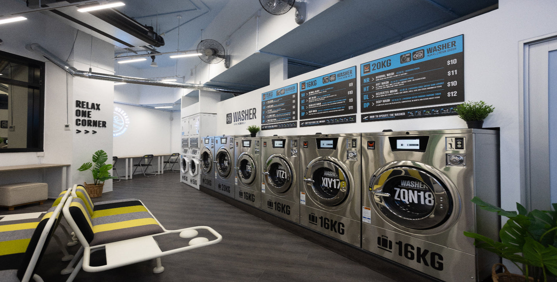 LocationSingapore's 1st aviation-themed laundromat with IPSO app-enabled machine, massage chairs, food and claw machines.