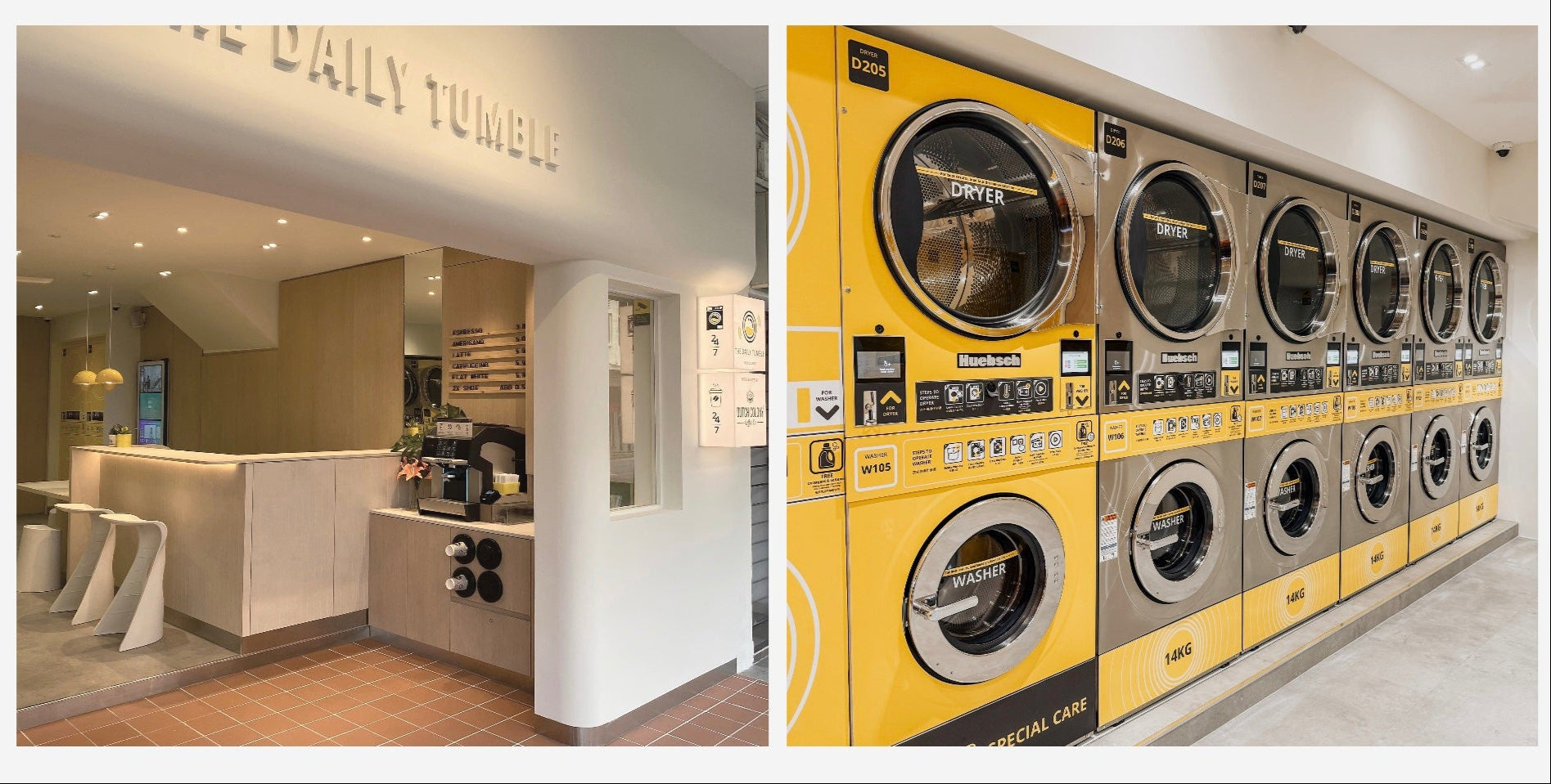 LocationLifestyle Self-Service Laundromat with a thoughtfully crafted space. Enjoy Dutch Colony coffee and plenty of room to relax while you do your laundry.
